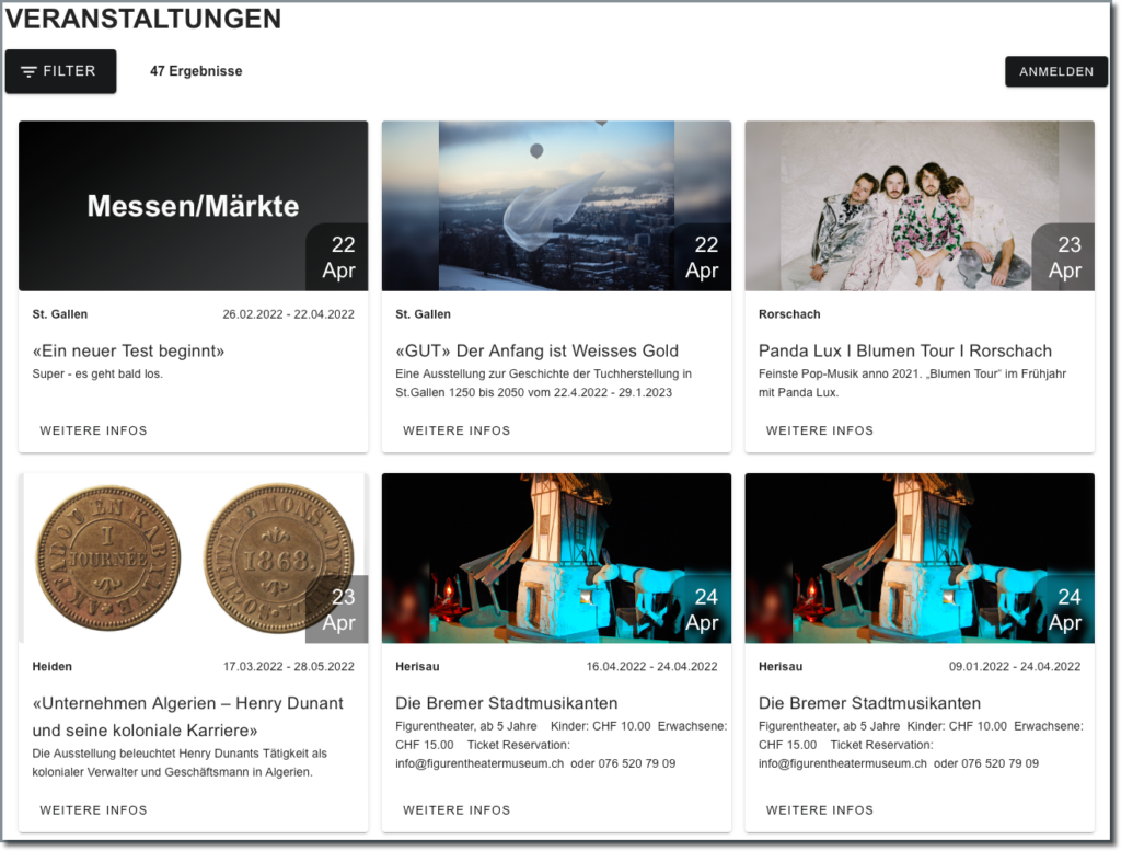 Der Event steht im Fokus und ist somit ein Blickfang für den Leser